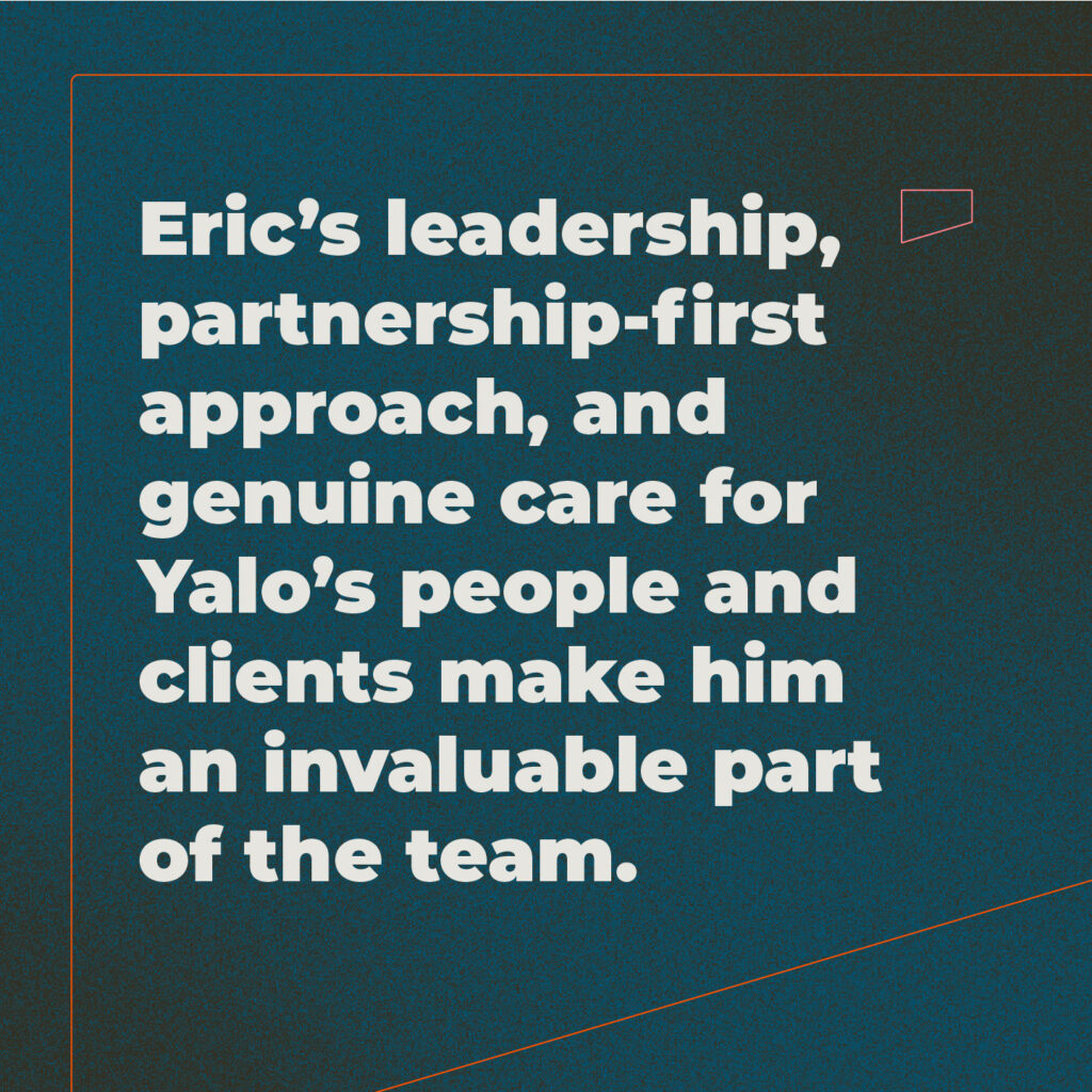 Eric’s leadership, partnership-first approach, and genuine care for Yalo’s people and clients make him an invaluable part of the team.