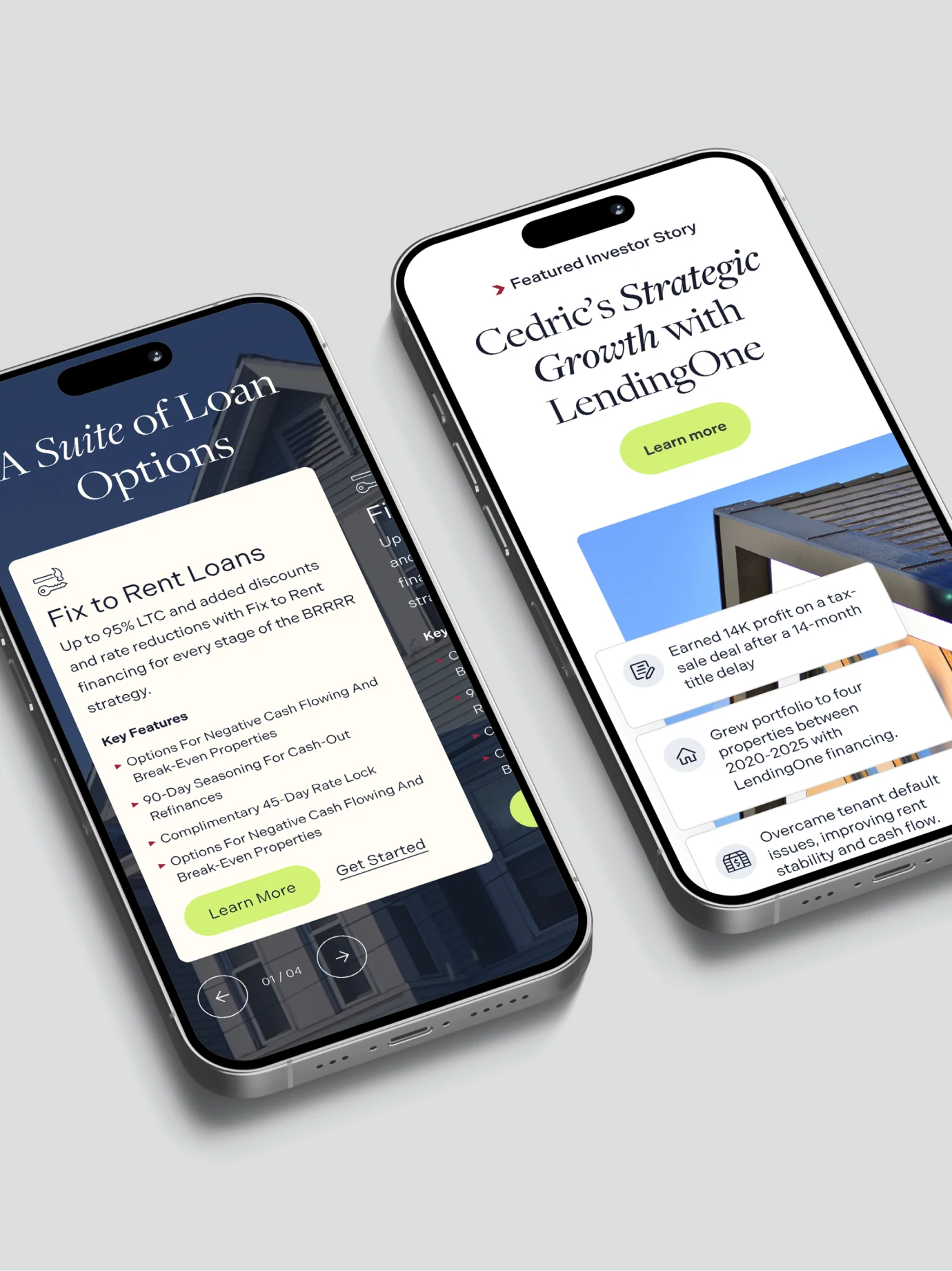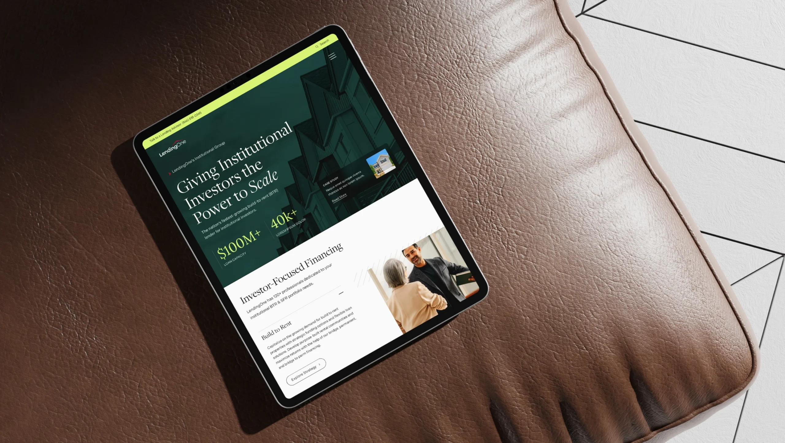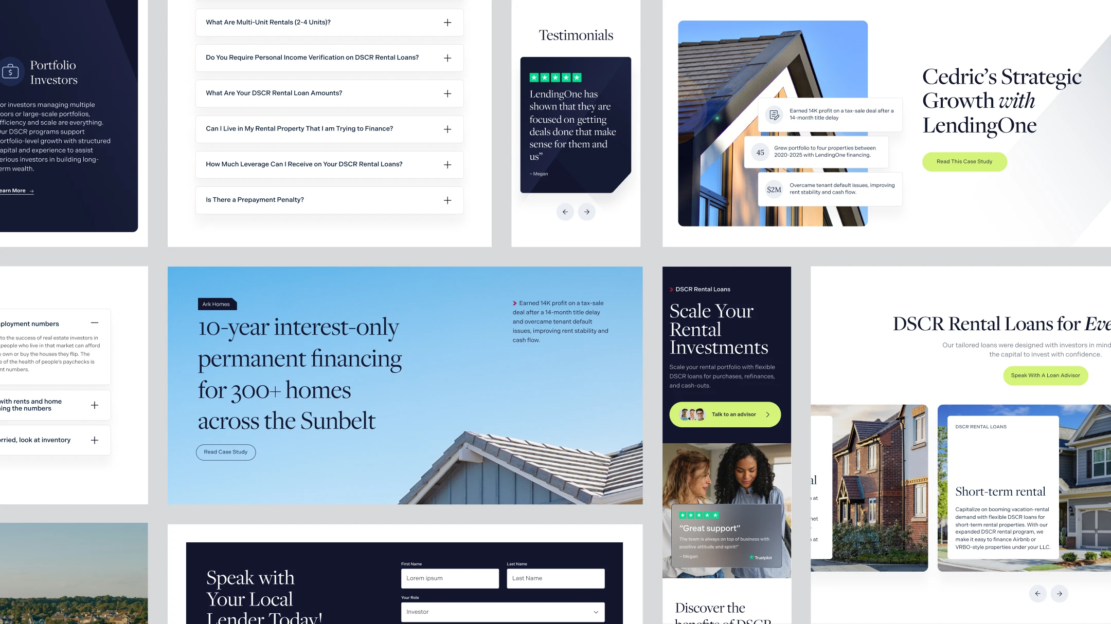 LendingOne, a leading lender for real estate investors, partnered with Yalo to modernize its digital presence and marketing ecosystem. The existing website and UX made it hard to serve multiple audiences while also scaling content, product pages, and lead generation efforts. At the same time, LendingOne wanted a more consistent and flexible brand system that could work across its core brand, the Institutional Investors sub-brand, and offline marketing touchpoints like trade shows.
