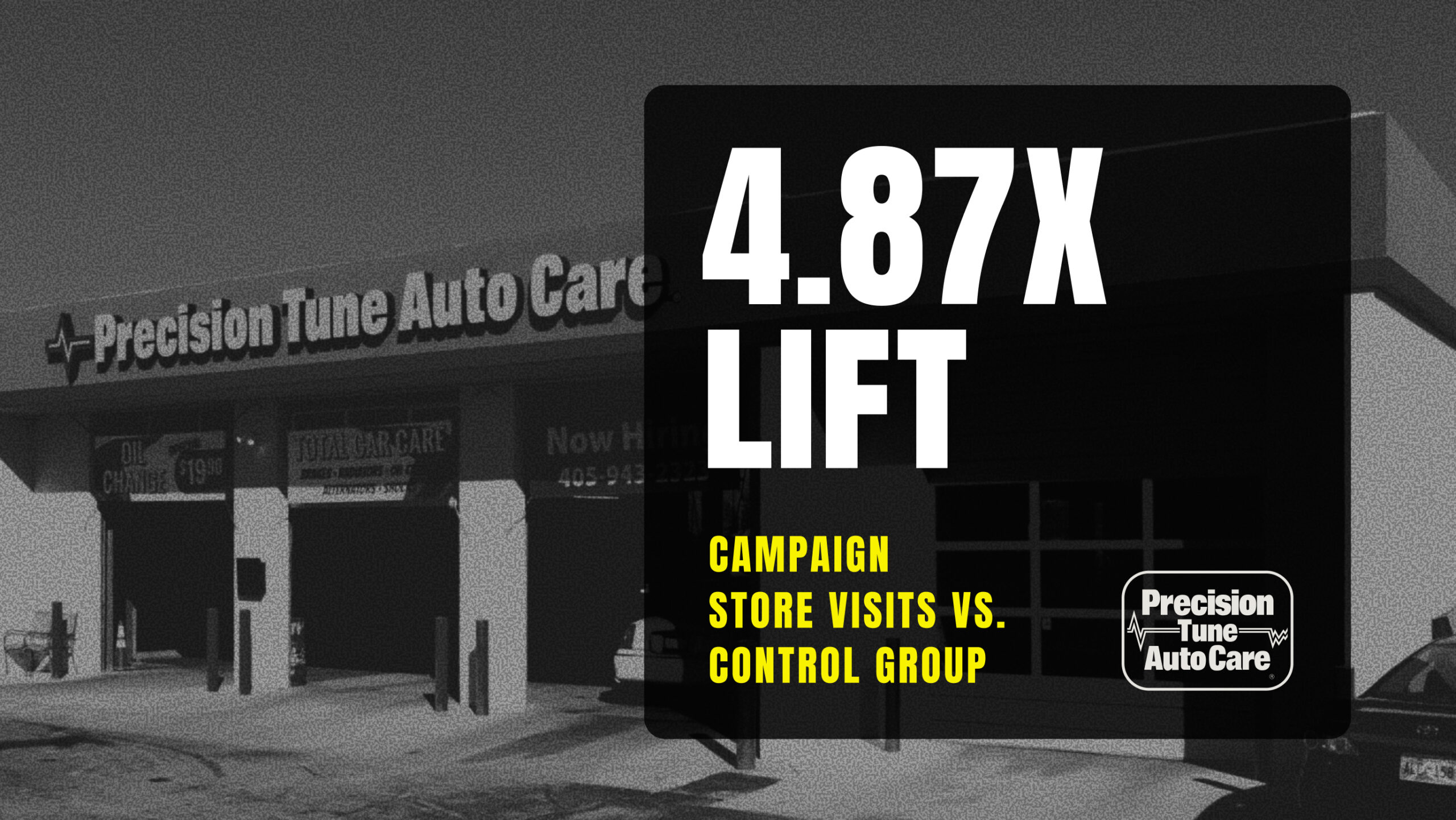 To keep our performance results objective, we utilized a store traffic lift study in conjunction with Zeta Global for Precision Tune Auto Care, and the results were unequivocal — we helped our client win, big. Yalo’s ad campaign delivered a 4.87x lift in store visits vs. a control group. Meaning if you saw our ads, you were nearly 5x more likely to visit a Precision Tune Auto Care location in Greater Atlanta, and we attributed more than 53,000 visits to PTA locations in one year as a result.